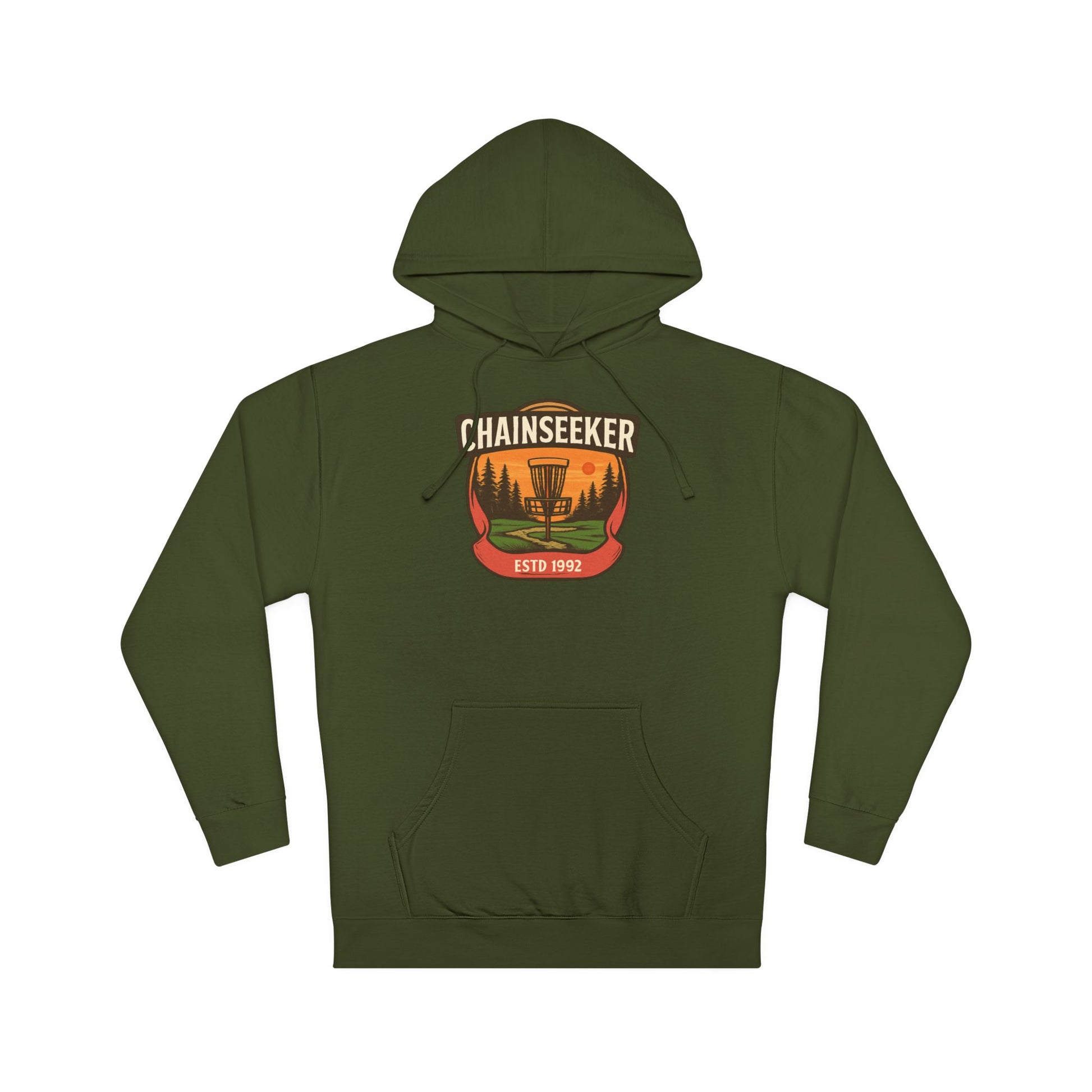 Chainseeker Hoodie – Vintage Disc Golf Badge Sweatshirt