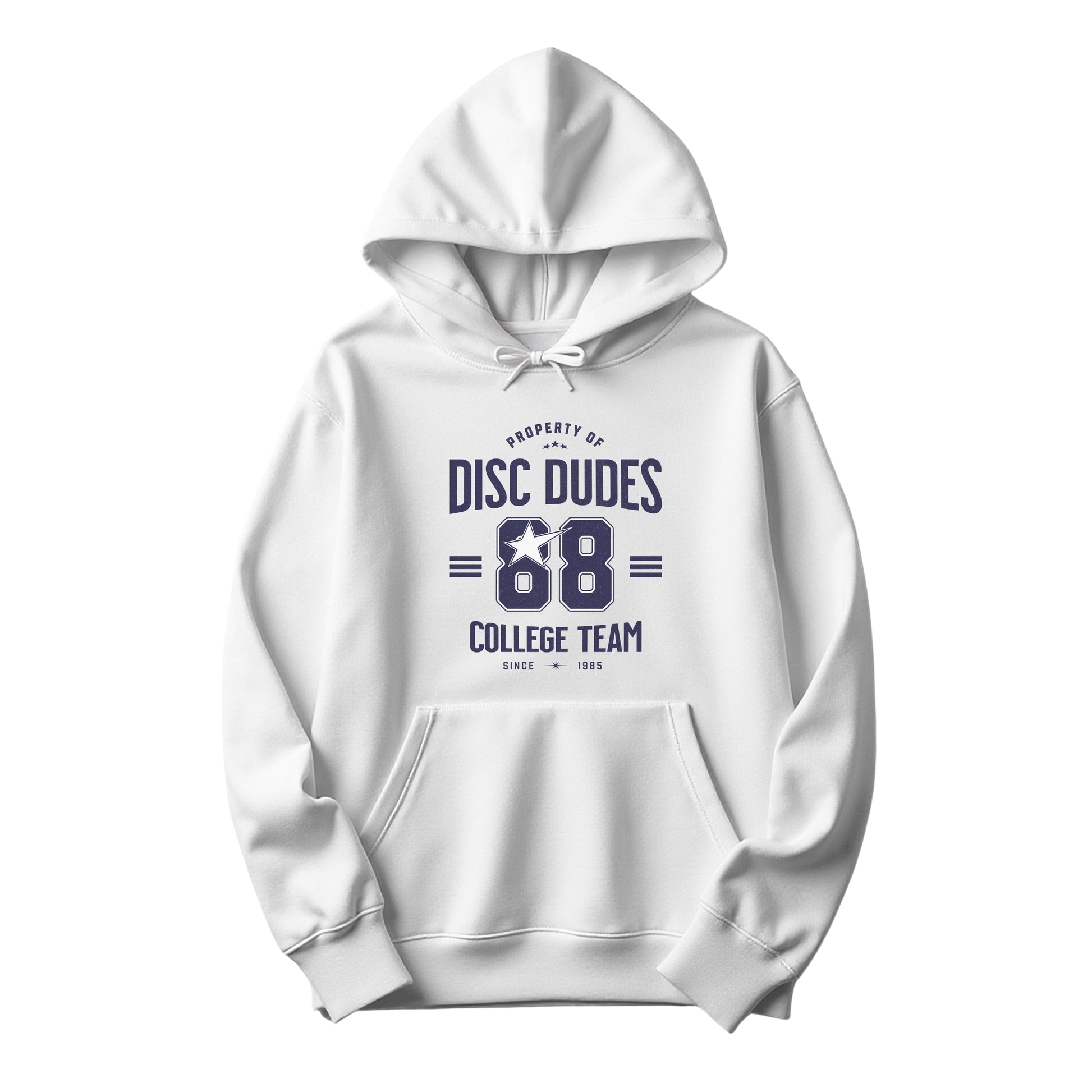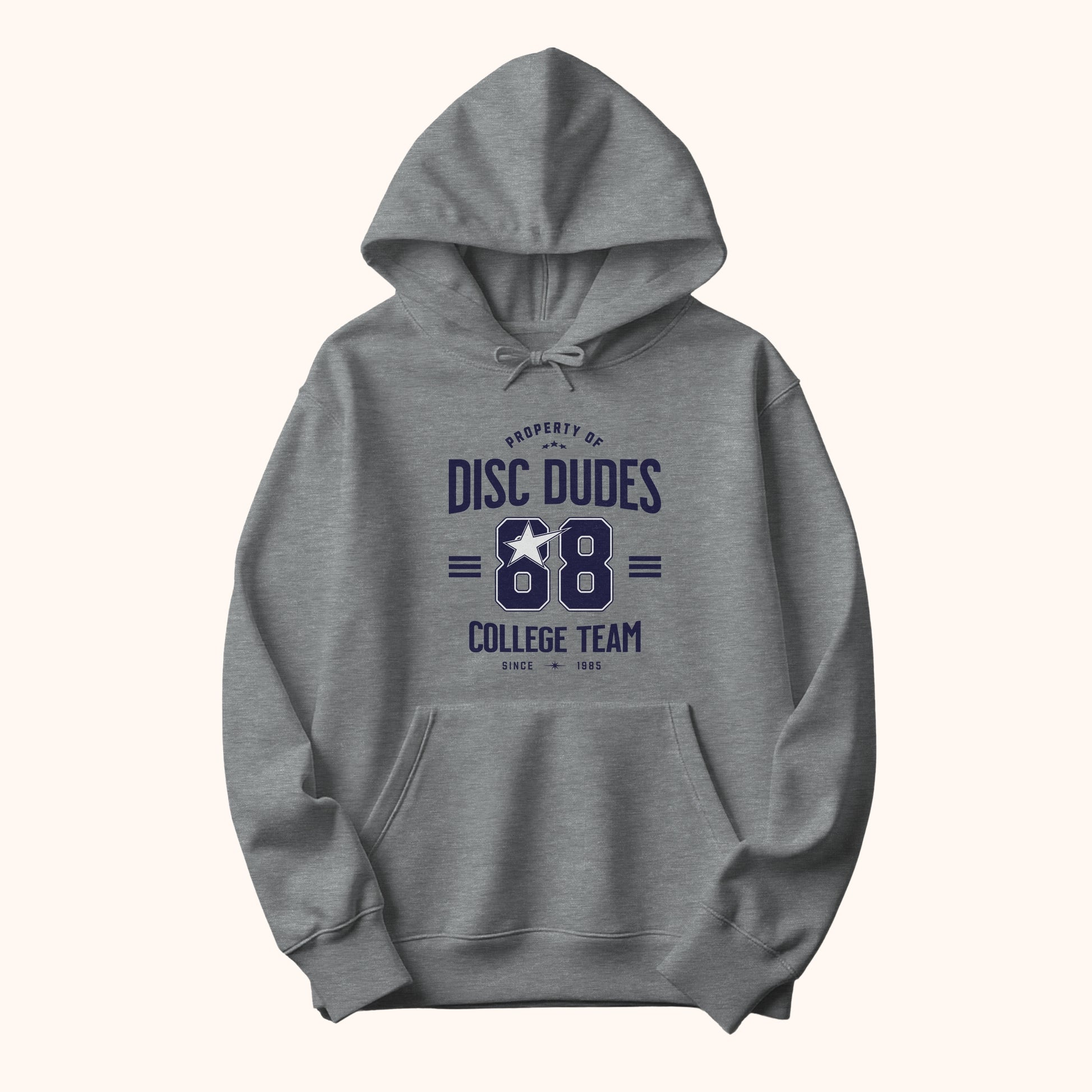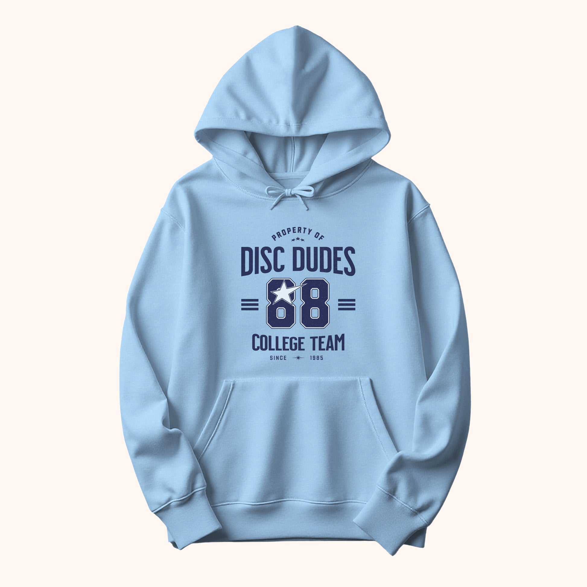 Rep the squad in classic campus style. This Disc Dudes “College Team” hoodie blends that vintage athletic look with a bold varsity number and star graphic — built for morning rounds, road trips, and every chill hang after a long day of throwing plastic. Cozy, confident, and 100% Disc Dudes energy.